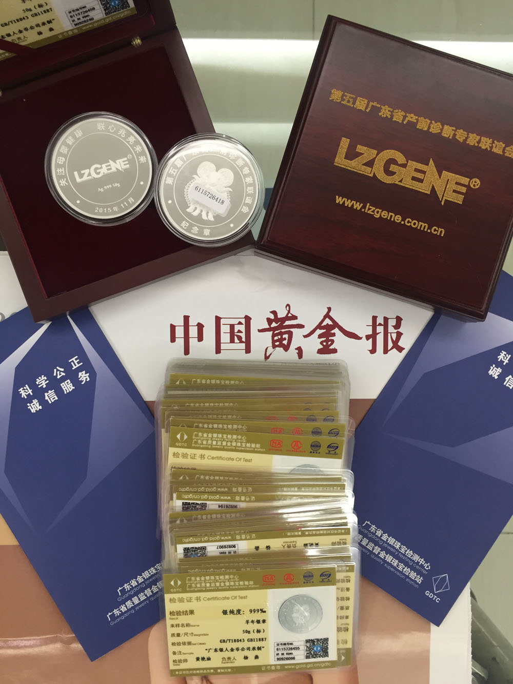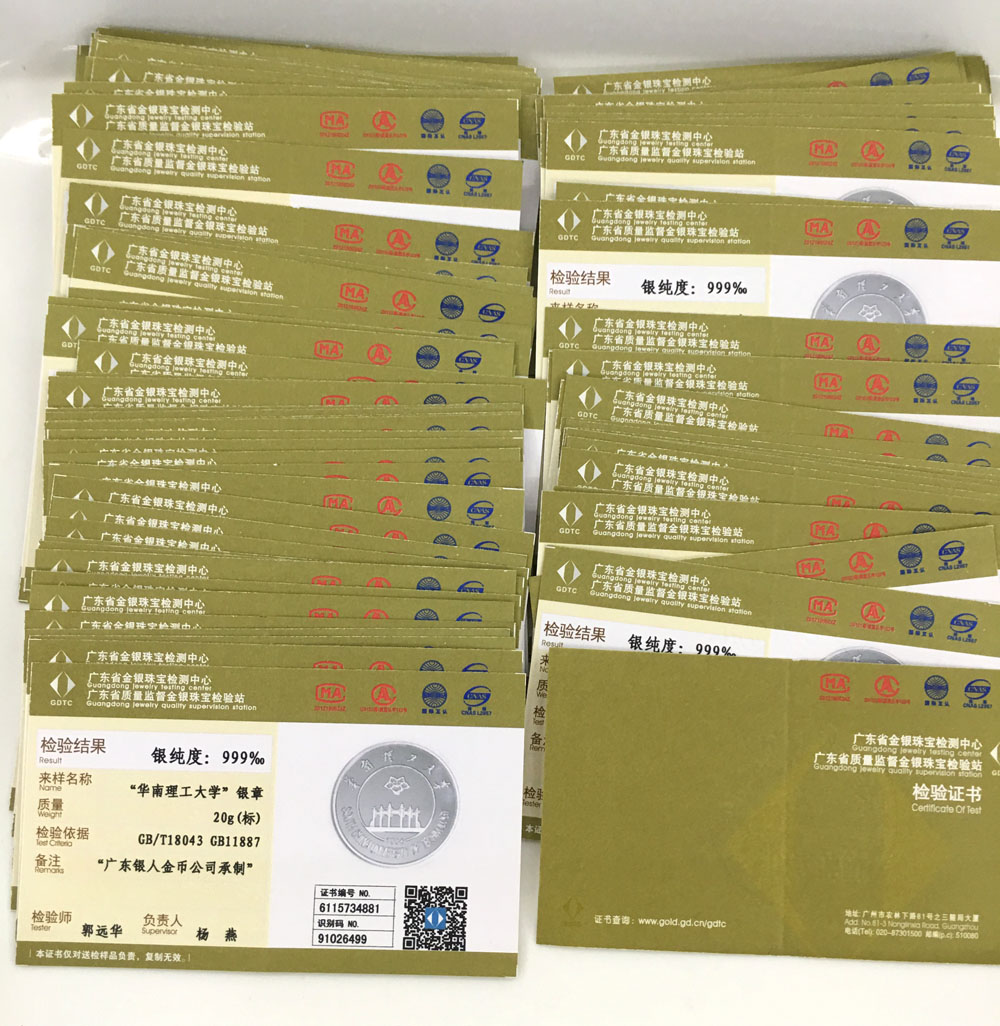 廣東省質監純金銀紀念章鑒定報告