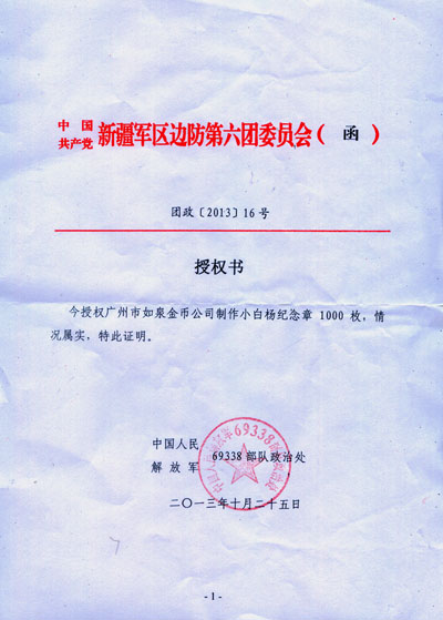 2013年10月蘭州軍區(qū)69338部隊小白楊哨所紀(jì)念章定制