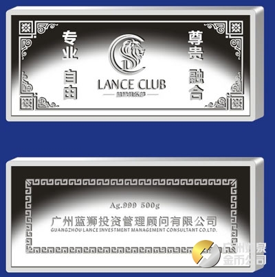 • 2013-11月:廣州藍(lán)獅投資公司Ag.999純銀500克銀磚、純銀銀卡、純銀銀條加工定制。