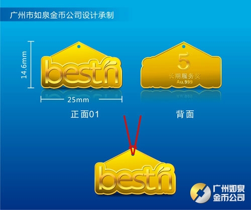 2013年11月廣東百斯盾公司純金千足金黃金紀念金牌定制