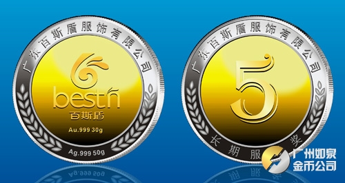 2013年11月廣東百斯盾公司銀包金紀念幣生產制作銀鑲金紀念章