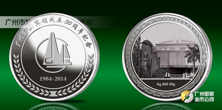 2014年2月:廣州東山賓館成立30周年純銀紀念章制作