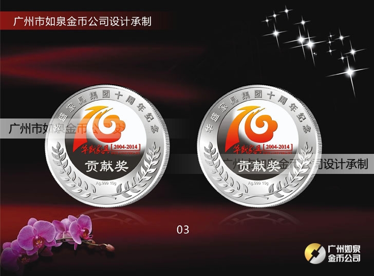 (中山市華盛家具集團十周年定制Ag.999純銀紀念章鑲水晶)