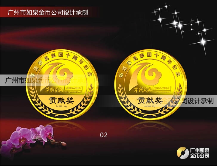 中山華盛集公司周年慶典制作純金紀念幣鑲水晶擺件