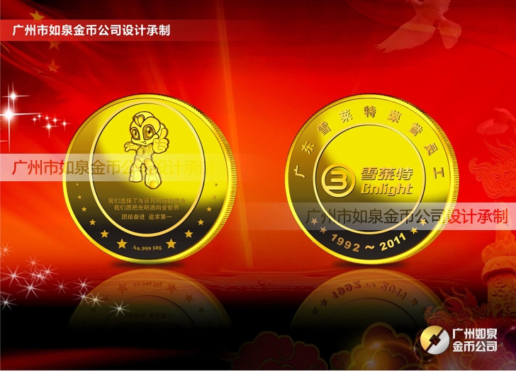 2011年5月:定制廣東雪萊特定制榮譽員工金牌定制紀念金幣