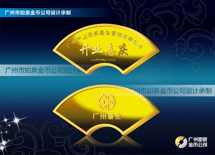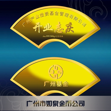定制廣州產業投資基金純金紀念條制作純金金條、扇形金條、扇形金幣、扇形紀念金章