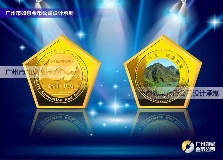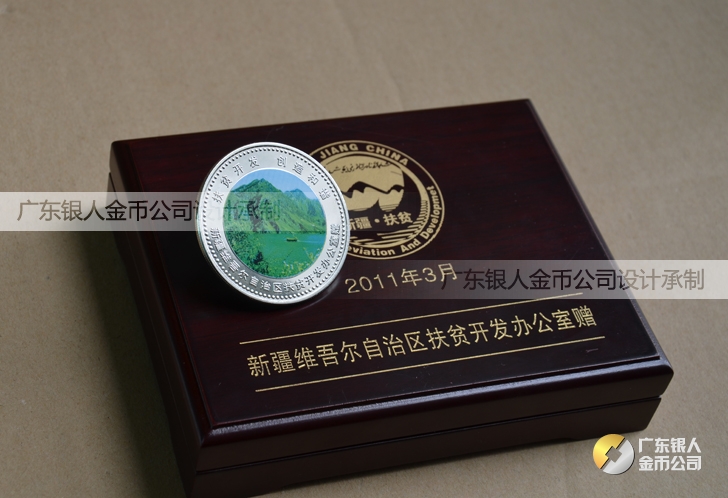 制作新疆自冶區(qū)政府彩色紀(jì)念幣定制黃金紀(jì)念章