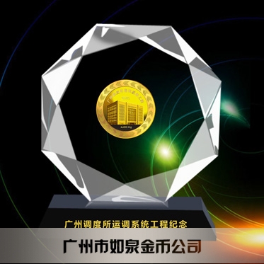 定制廣鐵集團(tuán)定做水晶鑲純金紀(jì)念幣