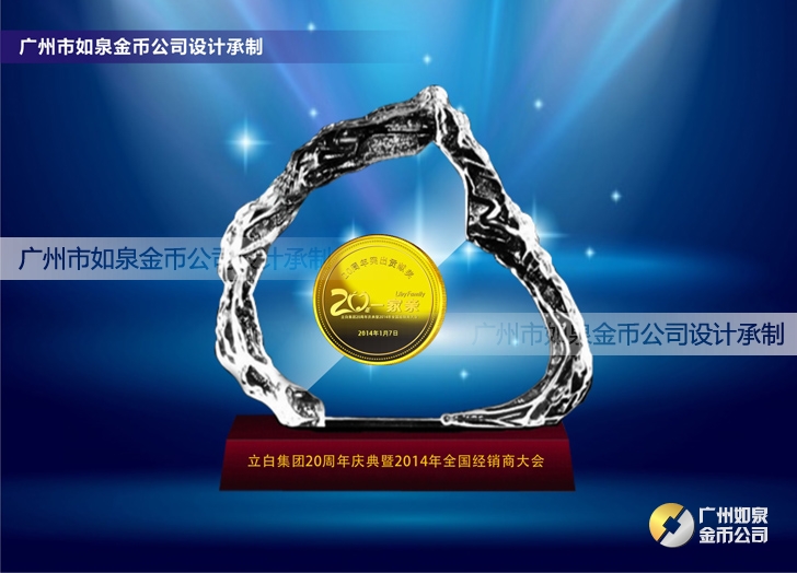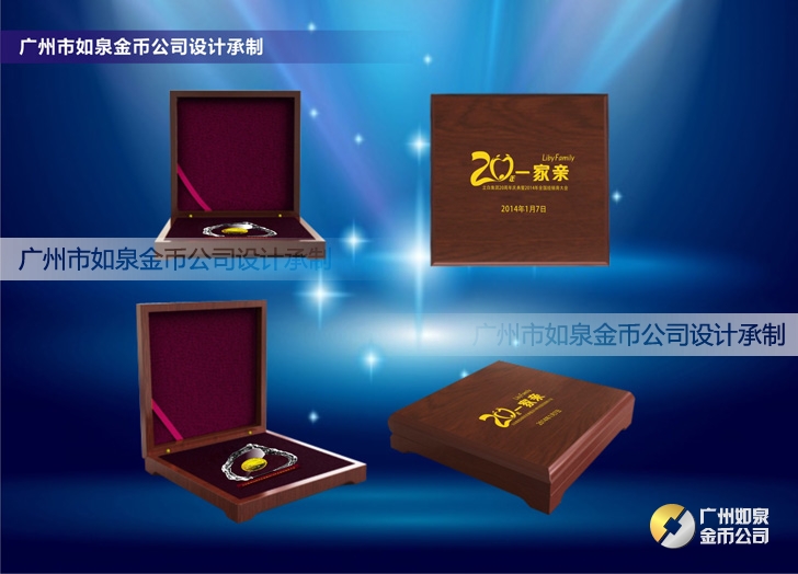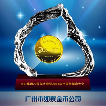 定制廣州立白集團20周年慶純金幣鑲嵌水晶擺件鑲金紀念幣