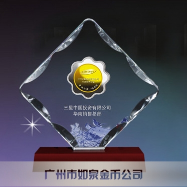 2014年4月:定制三星公司水晶擺件鑲純銀包純金紀(jì)念幣