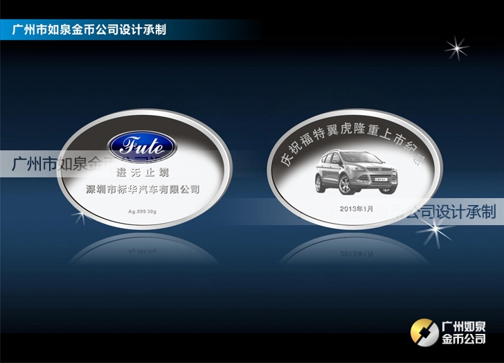 2013年1月:定制深圳4S店慶祝福特翼虎上市紀念銀幣制作