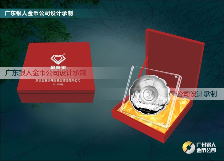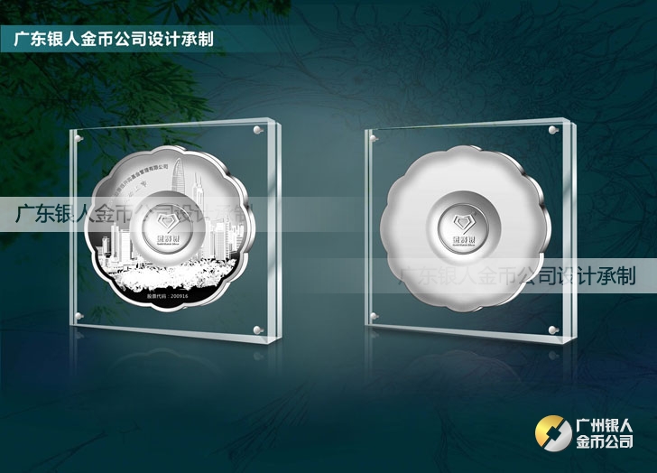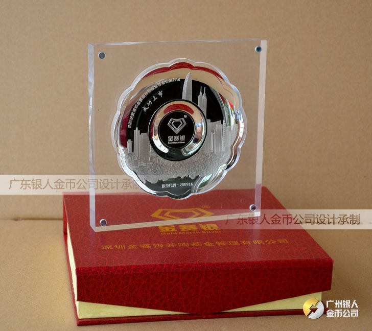 深圳金賽銀并購基金公司企業上市純銀紀念盤定做、鑲水晶擺件底座
