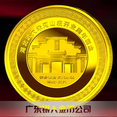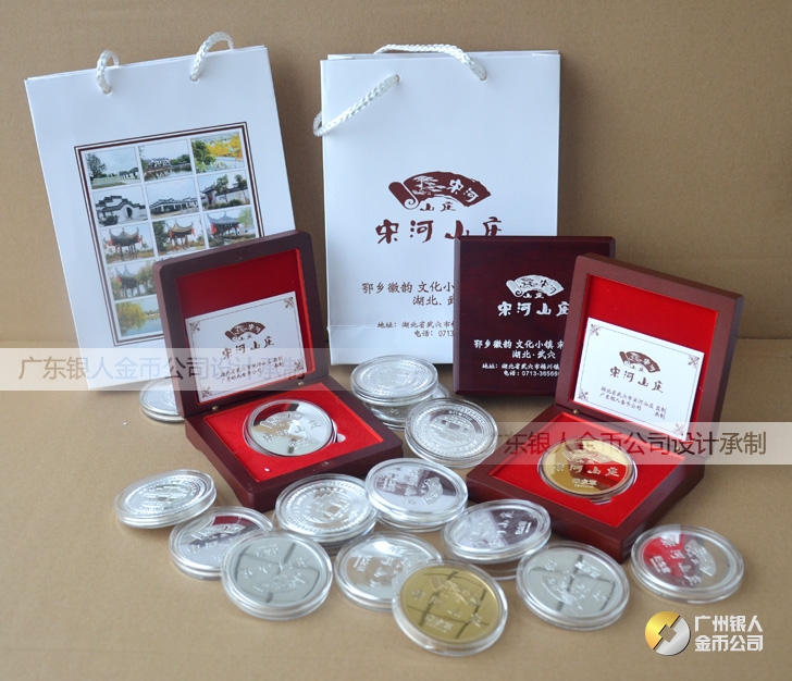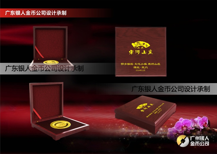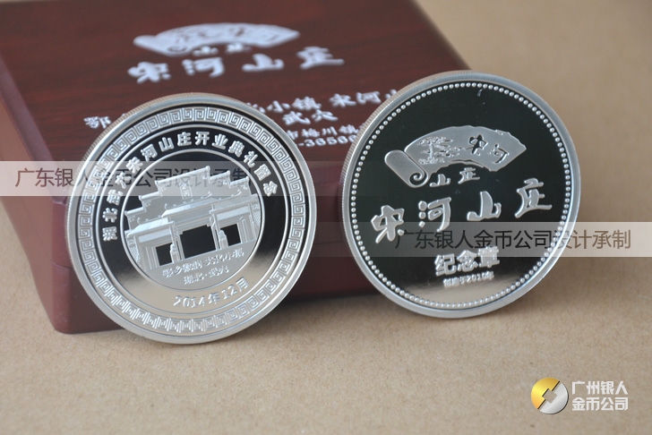 訂做湖北宋河山莊開業留念紀念金銀紀念章、訂制紀念金銀章