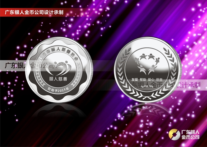 珠海麗人慈善會純金銀幣定制、制作純金銀紀念幣定制
