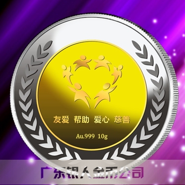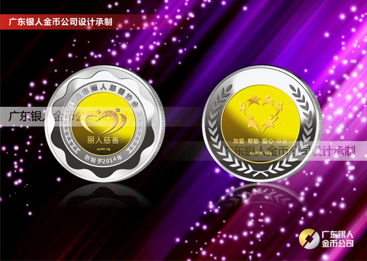 珠海麗人慈善會成立周年慶典定制鑲金銀紀念幣定制、純銀鑲金銀紀念幣定制