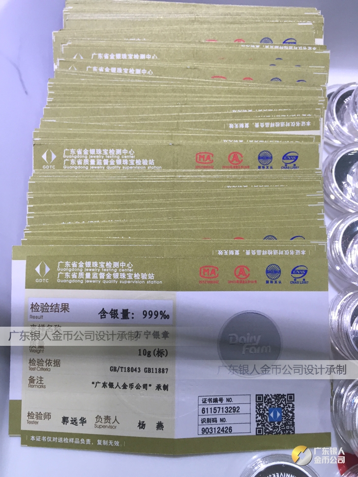 廣東銀人金幣公司承接客戶個性化定制的金銀幣、金銀章、金銀條、金銀牌、金銀盤均由國家質(zhì)監(jiān)部門、嚴(yán)格檢測、權(quán)威鑒定: