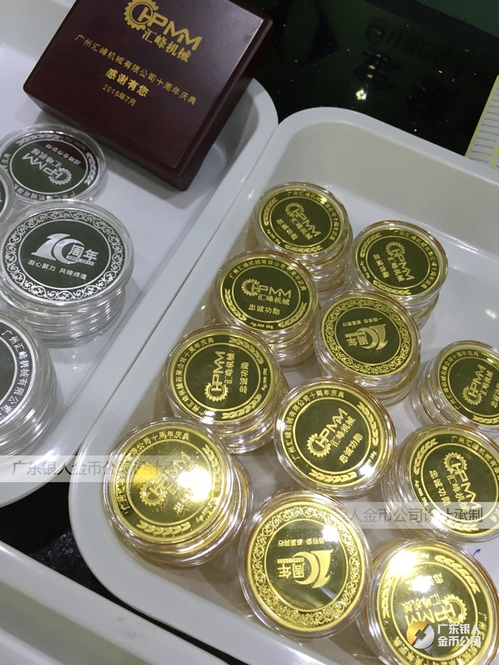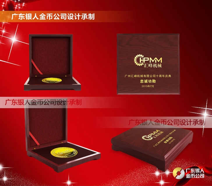 廣州匯峰機械公司成立十周年慶典紀念工作滿3年服務獎純銀紀念銀牌定制、滿5年忠誠獎純金銀獎牌定制、滿10年功勛獎純金銀紀念幣定制。
