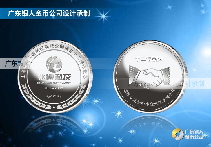 2015年6月訂制 山東兆通公司十二周年慶純銀章紀念銀章訂制