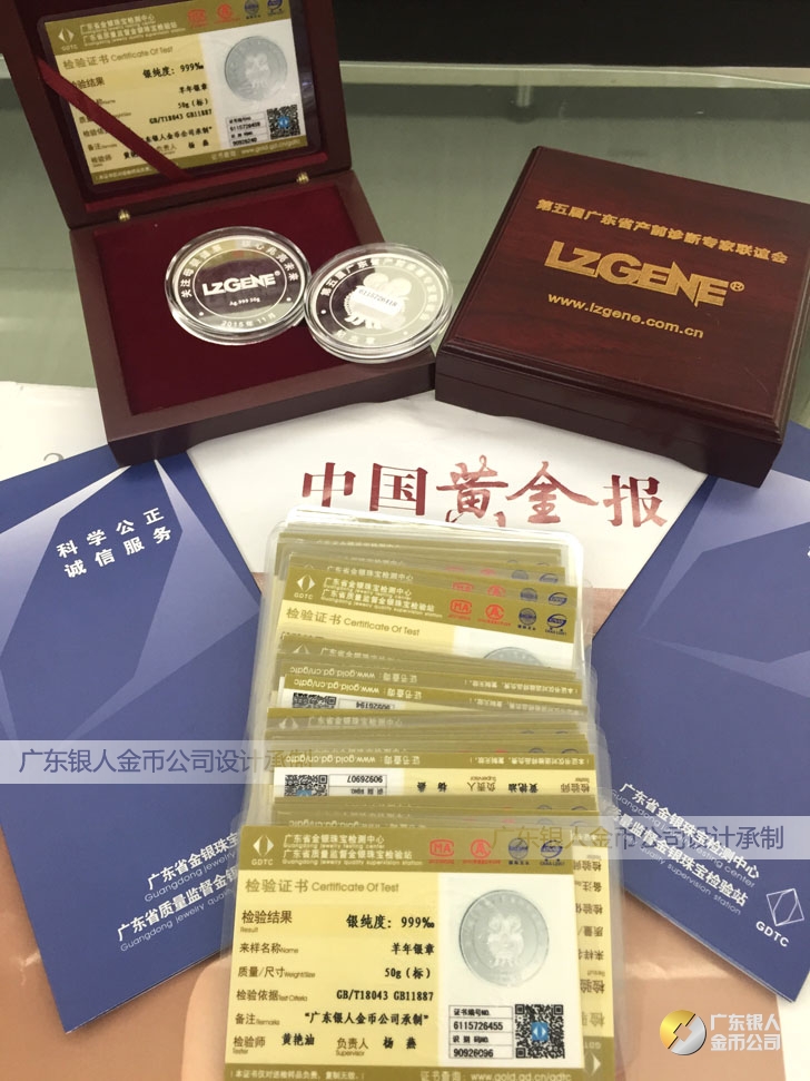 廣東銀人金幣公司承接客戶個(gè)性化定制的金銀幣、金銀章、金銀條、金銀牌、金銀盤均由國(guó)家質(zhì)監(jiān)部門、嚴(yán)格檢測(cè)、權(quán)威鑒定: