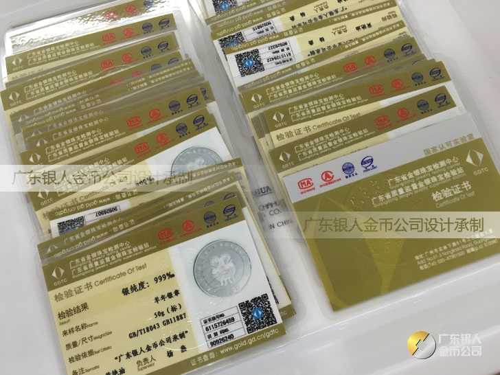 廣東銀人金幣公司承接客戶個性化定制的金銀幣、金銀章、金銀條、金銀牌、金銀盤均由國家質監部門、嚴格檢測、權威鑒定:
