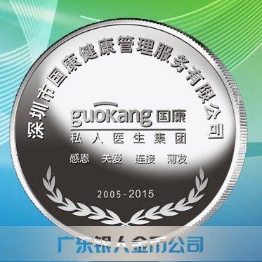 2015年9月定制 深圳國康公司純銀紀念幣定制、純銀銀牌定制