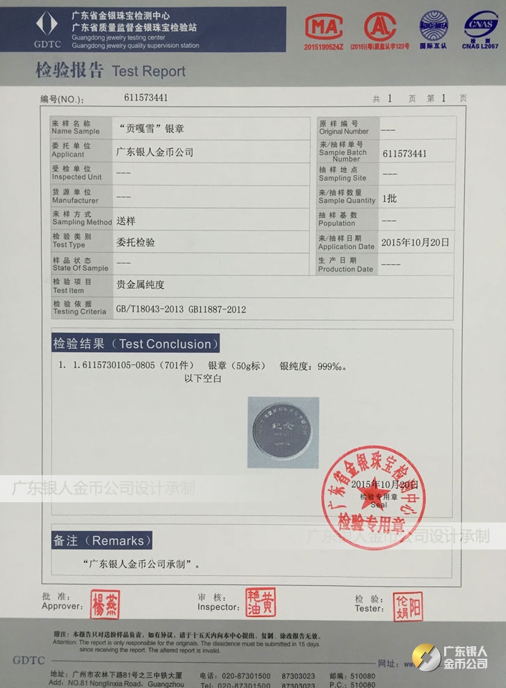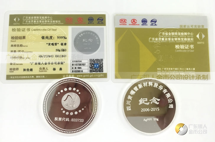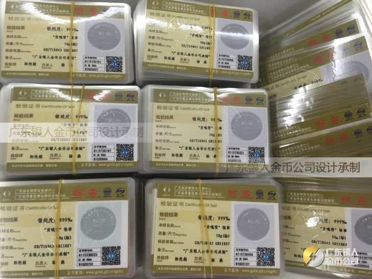 廣東銀人金幣公司承接客戶個性化定制的金銀幣、金銀章、金銀條、金銀牌、金銀盤均由國家質監部門、嚴格檢測、權威鑒定: