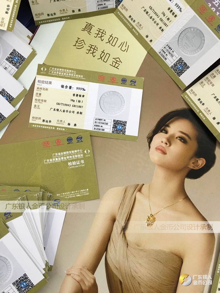 廣東銀人金幣公司承接客戶個性化定制的金銀幣、金銀章、金銀條、金銀牌、金銀盤均由國家質監部門、嚴格檢測、權威鑒定: