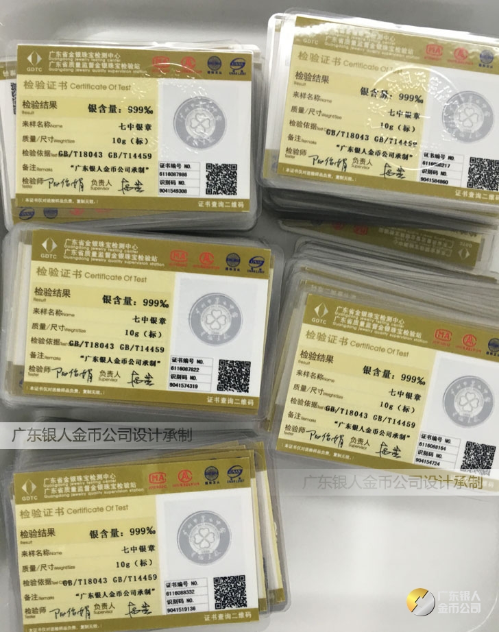 廣東銀人金幣公司承接客戶個(gè)性化定制的金銀幣、金銀章、金銀條、金銀牌、金銀盤均由國(guó)家質(zhì)監(jiān)部門、嚴(yán)格檢測(cè)、權(quán)威鑒定: