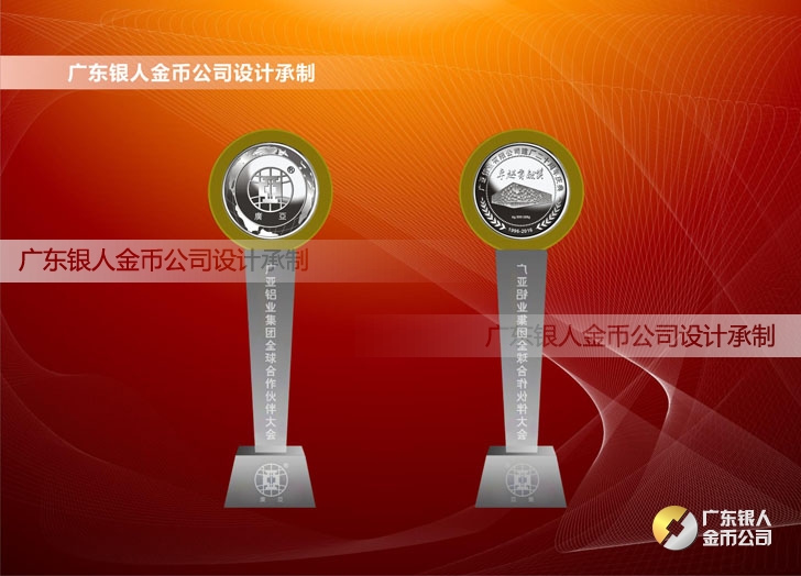 2016年4月定制 廣亞鋁材公司周年慶年會金銀幣鑲水晶擺件