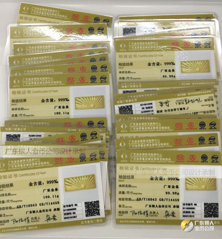 廣東銀人金幣公司承接客戶個性化定制的金銀幣、金銀章、金銀條、金銀牌、金銀盤均由國家質(zhì)監(jiān)部門、嚴格檢測、權(quán)威鑒定: