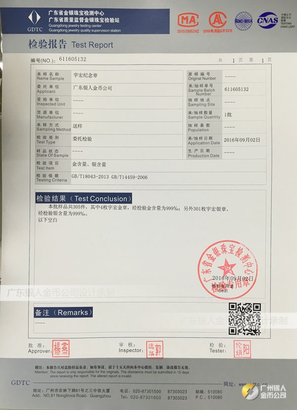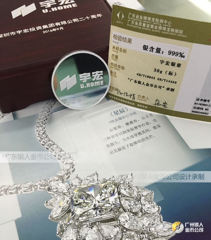 廣東銀人金幣公司承接客戶個性化定制的金銀幣、金銀章、金銀條、金銀牌、金銀盤均由國家質監部門、嚴格檢測、權威鑒定: