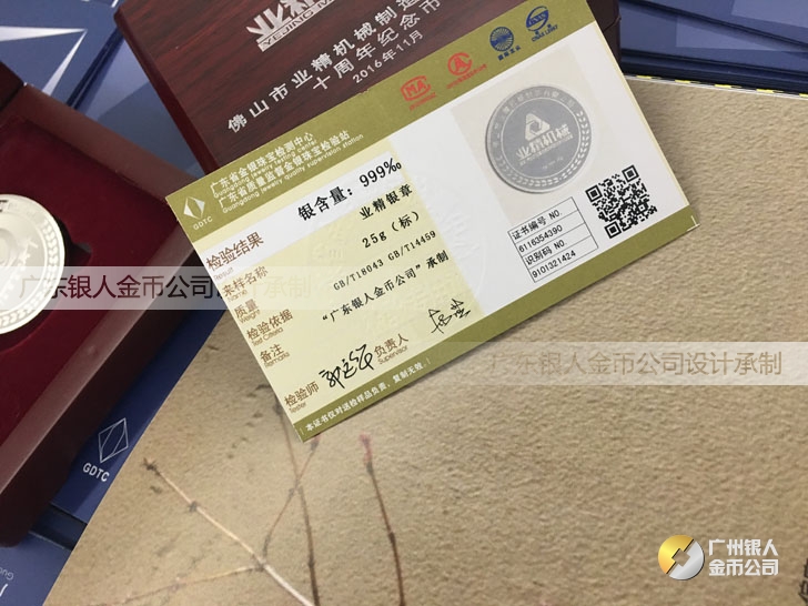 廣東銀人金幣公司承接客戶個性化定制的金銀幣、金銀章、金銀條、金銀牌、金銀盤均由國家質監部門、嚴格檢測、權威鑒定: