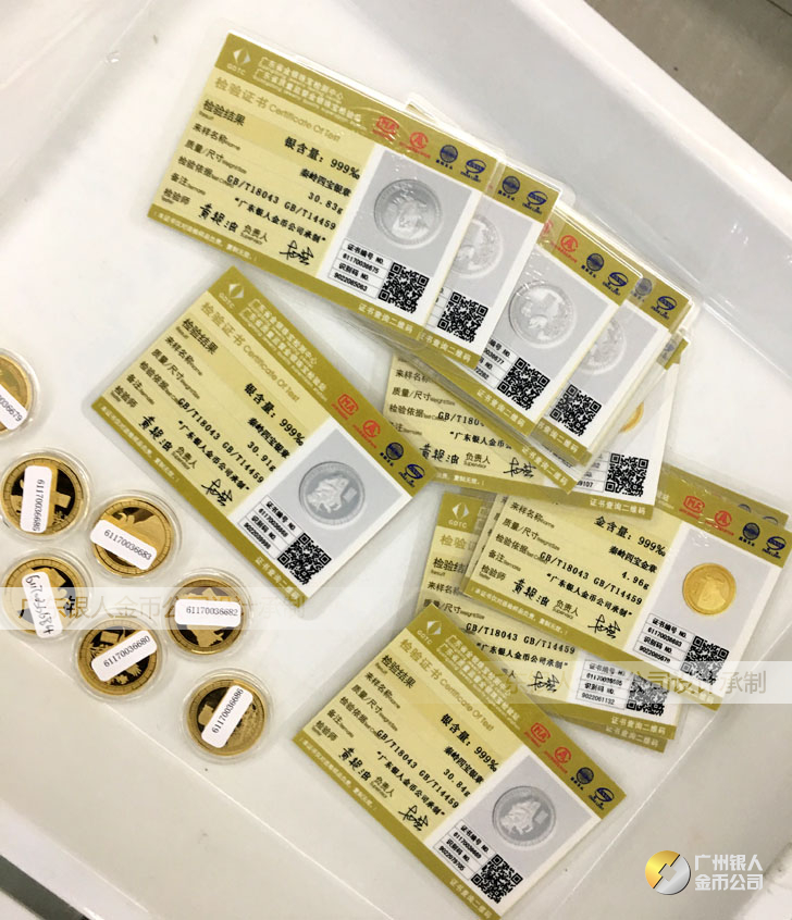 廣東銀人金幣公司承接客戶個性化定制的金銀幣、金銀章、金銀條、金銀牌、金銀盤均由國家質監部門、嚴格檢測、權威鑒定: