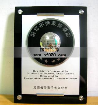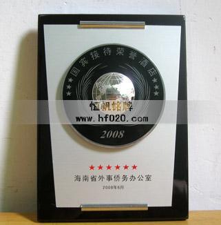 海南省人民政府外事僑務辦公室——國賓接待榮譽酒店高檔獎牌與榮譽獎牌的設計與生產。