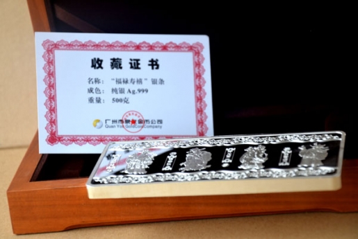 • 2014-6月:廣東萬銀貴金屬經(jīng)營公司定制純銀紀念章與紀念銀條加工制作。