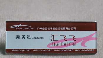 廣州白云國(guó)際機(jī)場(chǎng)——機(jī)場(chǎng)空姐胸牌,工作人員工號(hào)牌、2009年度“旅客服務(wù)提升”形象標(biāo)識(shí)胸牌的設(shè)計(jì)與制作。