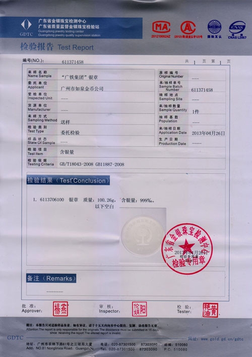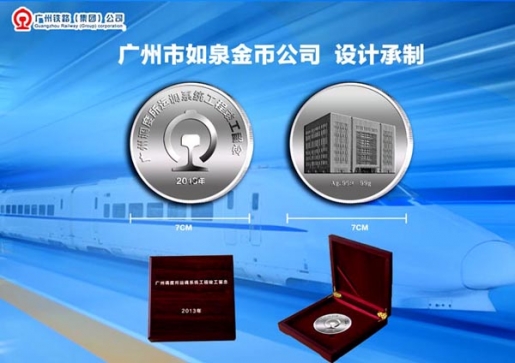 2013年4月廣鐵集團廣州調度所運調系統工程竣工紀念幣定做