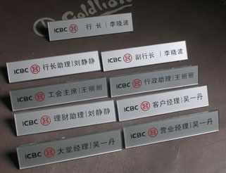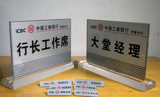 中國工商銀行黑龍江省分行——黑龍江省分行、各地市支行工作人員胸牌、營業(yè)部員工工牌、營業(yè)員工號牌及銀行服務(wù)窗口桌牌、柜臺水晶臺牌的設(shè)計與制作。