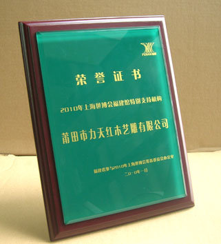 福建省對外貿(mào)易經(jīng)濟合作廳——為該廳提供2009年度榮譽證書獎牌及2010年福建省參與2010年上海世博會籌委會榮譽證書、及其2010年上海世博會福建館支持機構獲獎單位高檔獎牌的設計與制作。