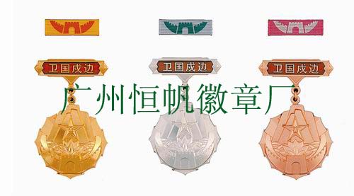(從左至右分別為衛國戍邊金質紀念章、衛國戍邊銀質紀念章、衛國戍邊銅質紀念章。)