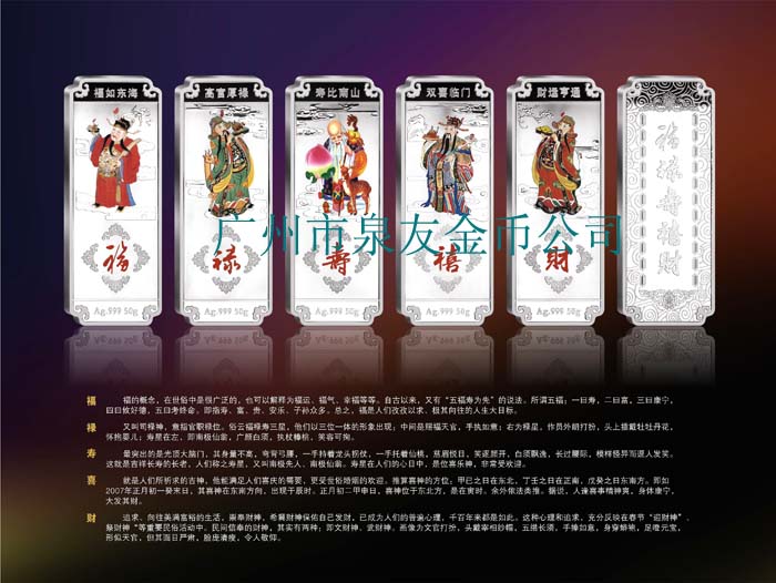 福祿壽喜財銀條、福祿壽喜財彩色銀條、五福彩銀章(圖)