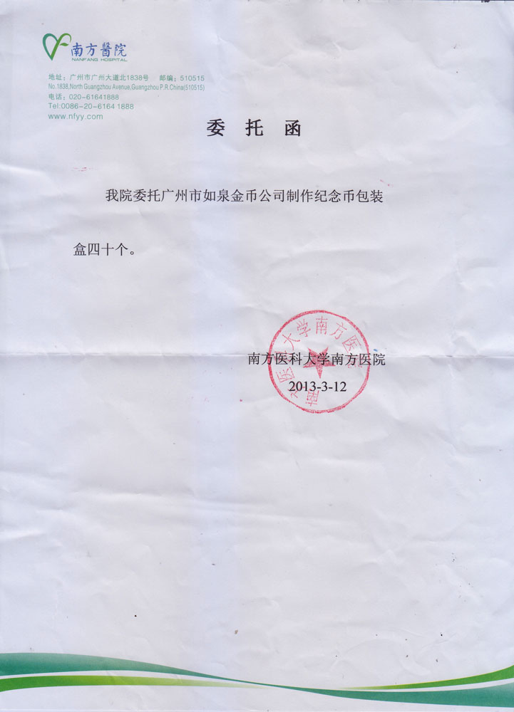 廣東省質監純金銀紀念章鑒定報告