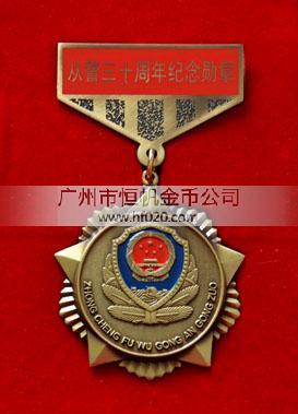 公安民警輔警安保從警10年榮譽銅質(zhì)紀(jì)念章、從警20年榮譽銀質(zhì)紀(jì)念章、從警30年金質(zhì)榮譽紀(jì)念章
