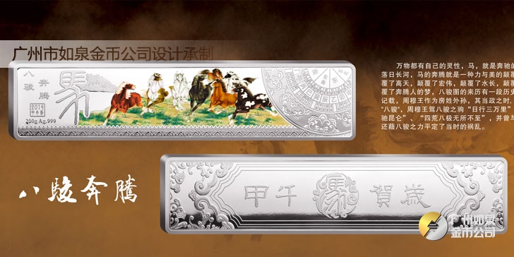 廣州市如泉金幣公司依托上海造幣廠和深圳國寶造幣廠等造幣公司以及金銀制品廠,設(shè)計定做紀念幣、紀念章、金銀幣、金銀章、金銀條,采用造幣工藝、選用千足金銀,個性定制金幣、定做銀幣、訂做金條、訂制銀條、制作紀念銀幣、制造紀念金幣、加工紀念銀章、生產(chǎn)紀念金章,純金純銀鑄造、全部國檢、權(quán)威檢測。