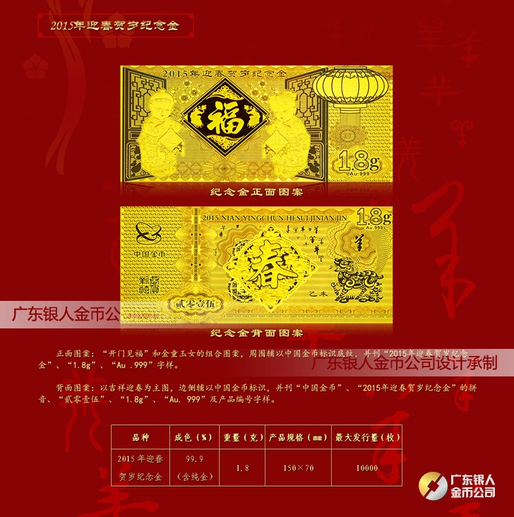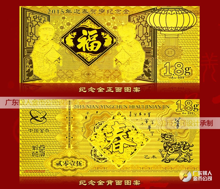 中國金幣總公司發行2015年迎春賀歲純金紀念金鈔