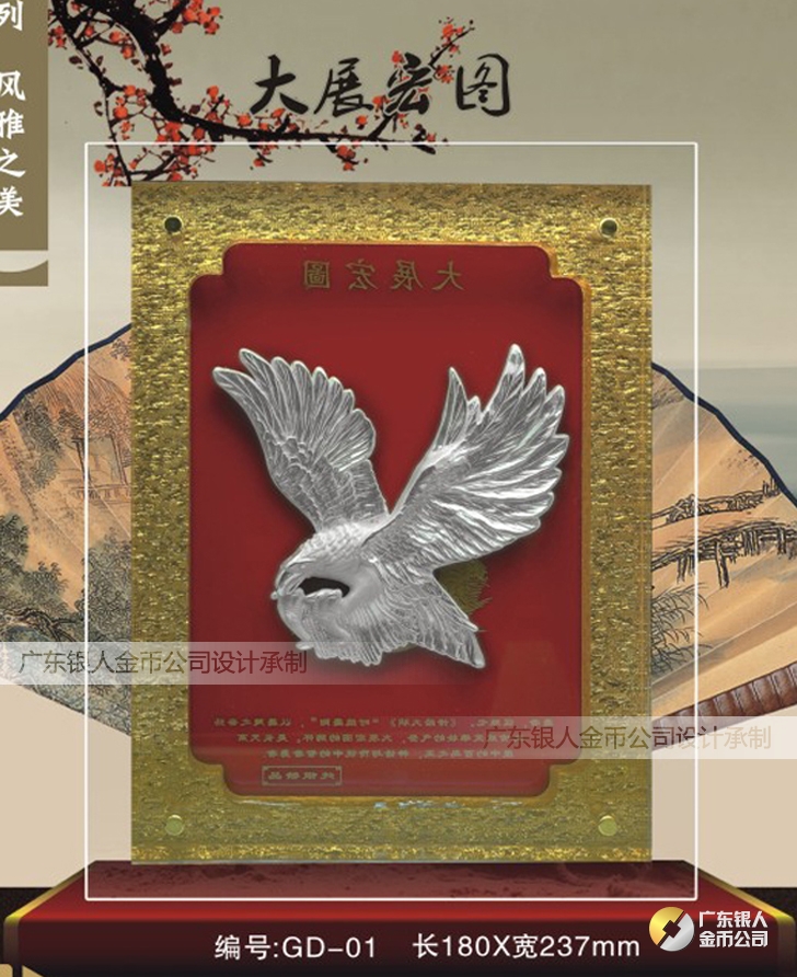 雄鷹展翅屏風/大展宏圖浮雕銀畫