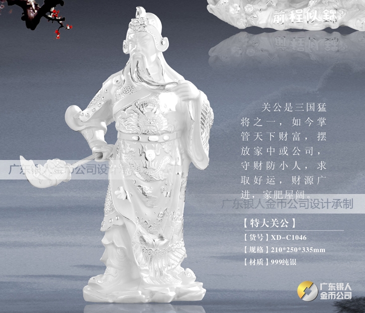 純銀關(guān)公像擺件、純銀關(guān)公財(cái)神像擺件