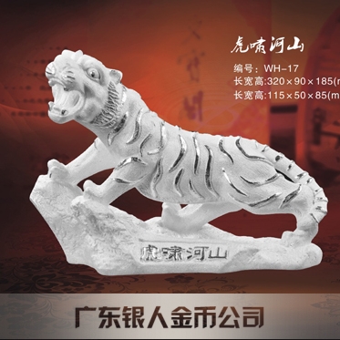 虎嘯河山純銀工藝品擺件